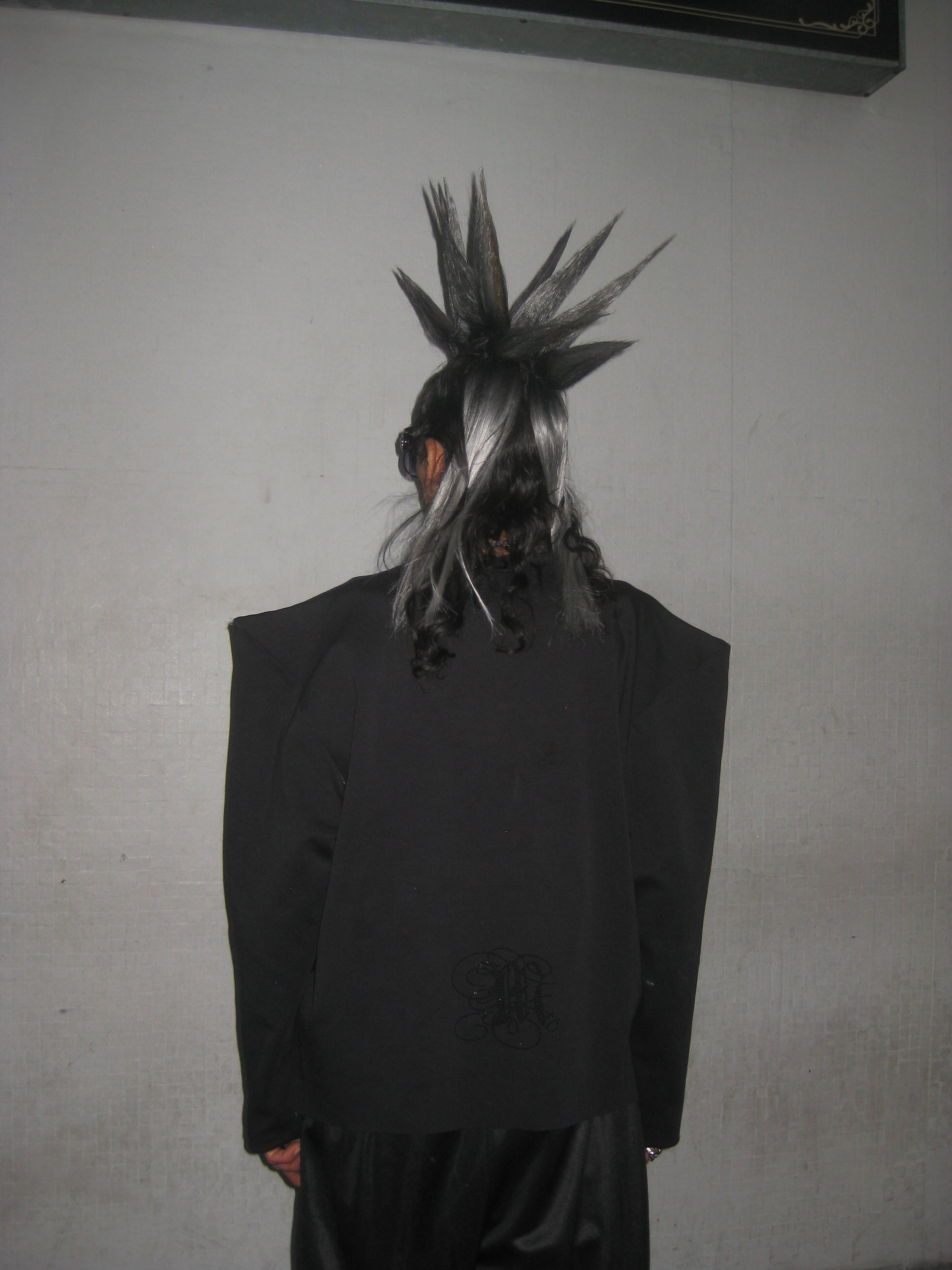 almost black long sleeve shirt with pointy shoulders and rhinestones. model wearing size M. For more info on sizing dm @manchad0